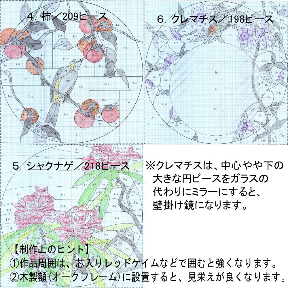 《JJ-905 》ステンドグラス・パターン集(その4)和風の円形平面6作《中級者向け》